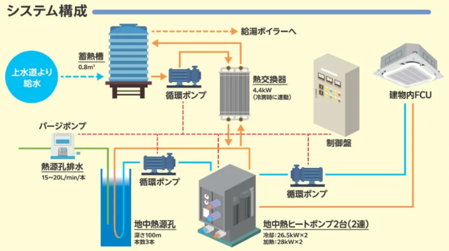 地中熱源空調システムの仕組みイメージ図(システム構成)