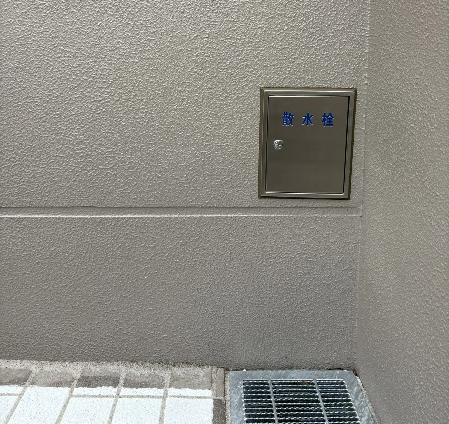 1階の片隅には井戸水の排水栓があり、夏場の水まきや送迎者の洗車、スロープの融雪、防災などに活用可能