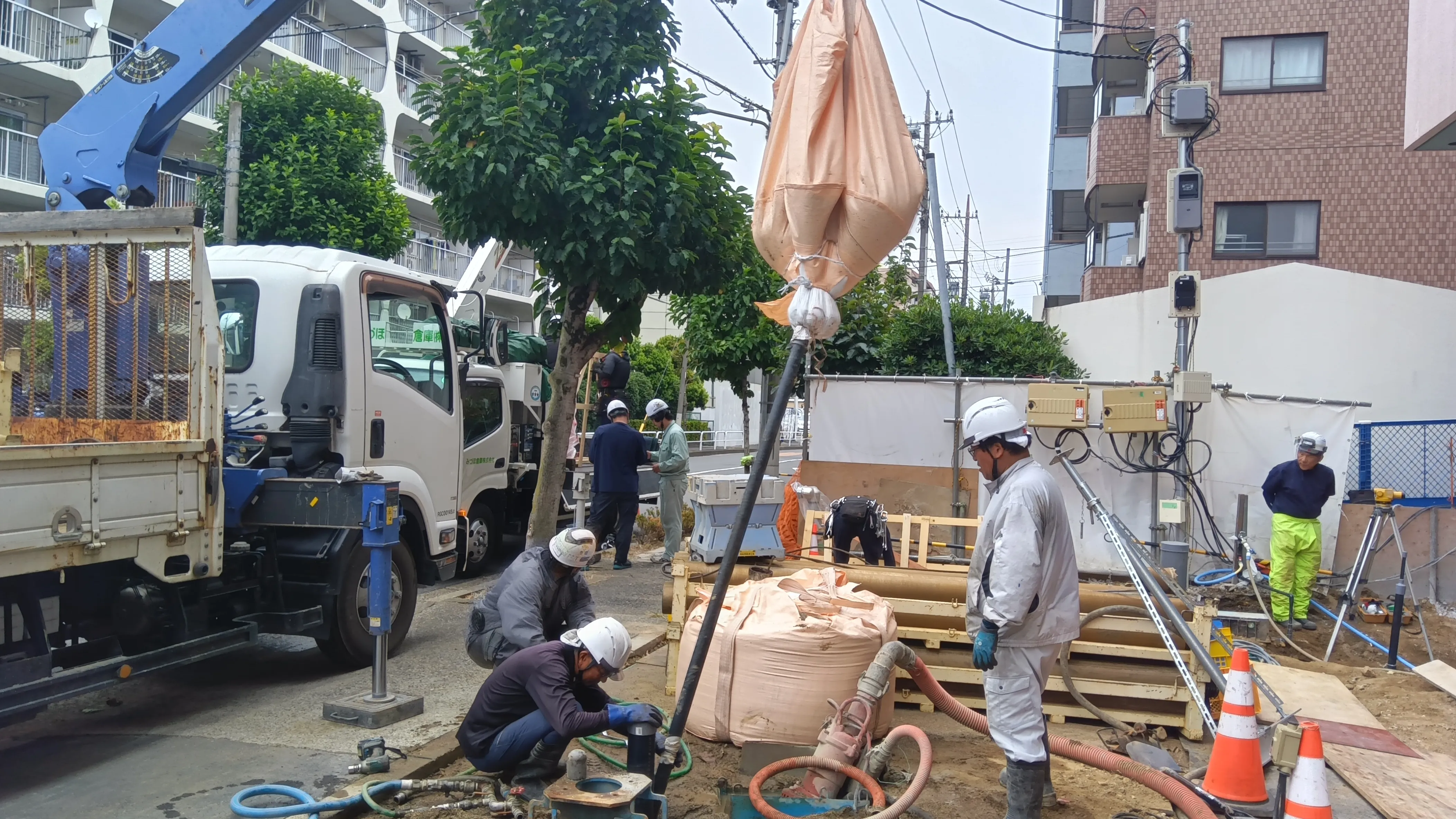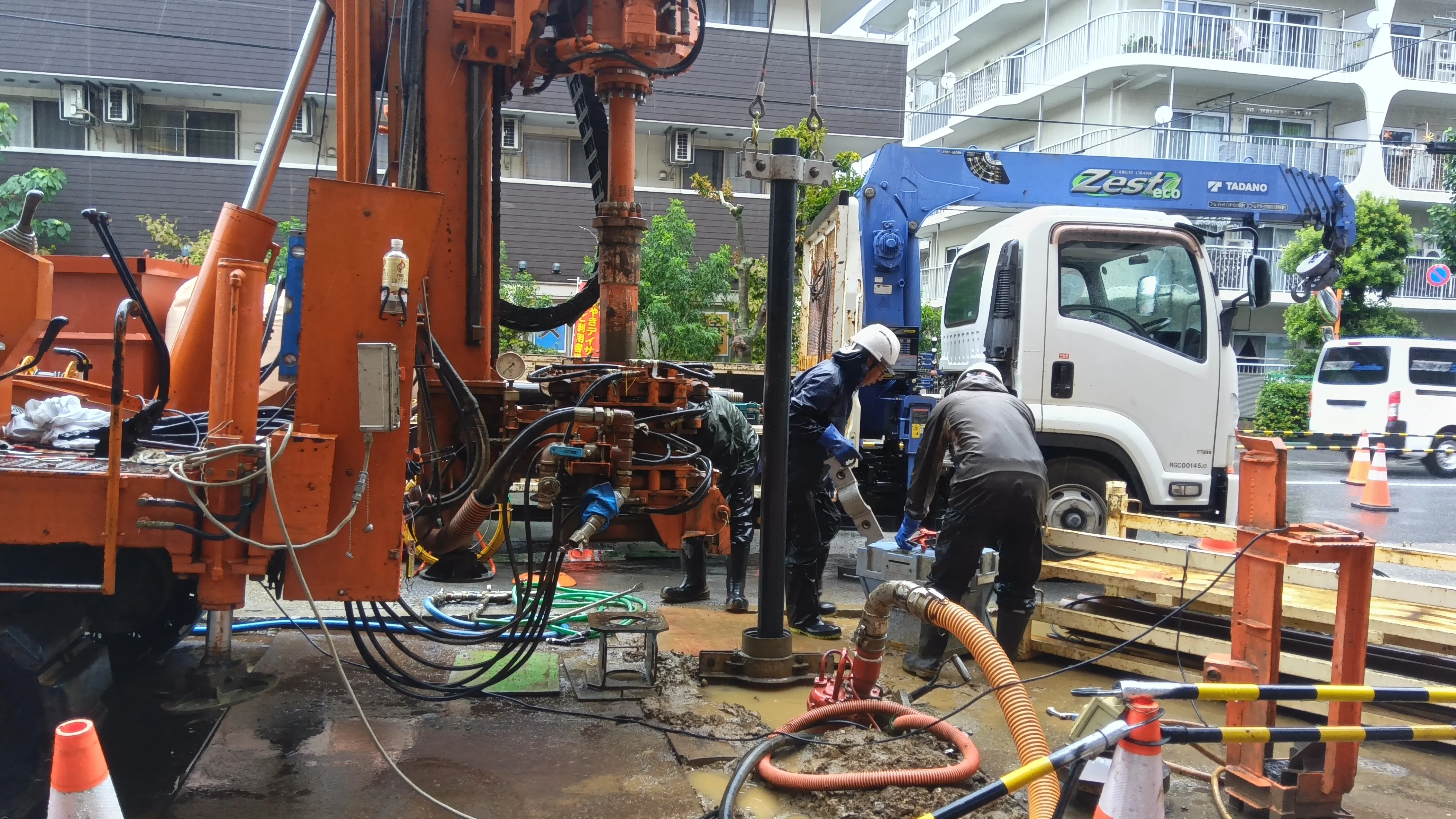ボーリング掘削時の現場の様子