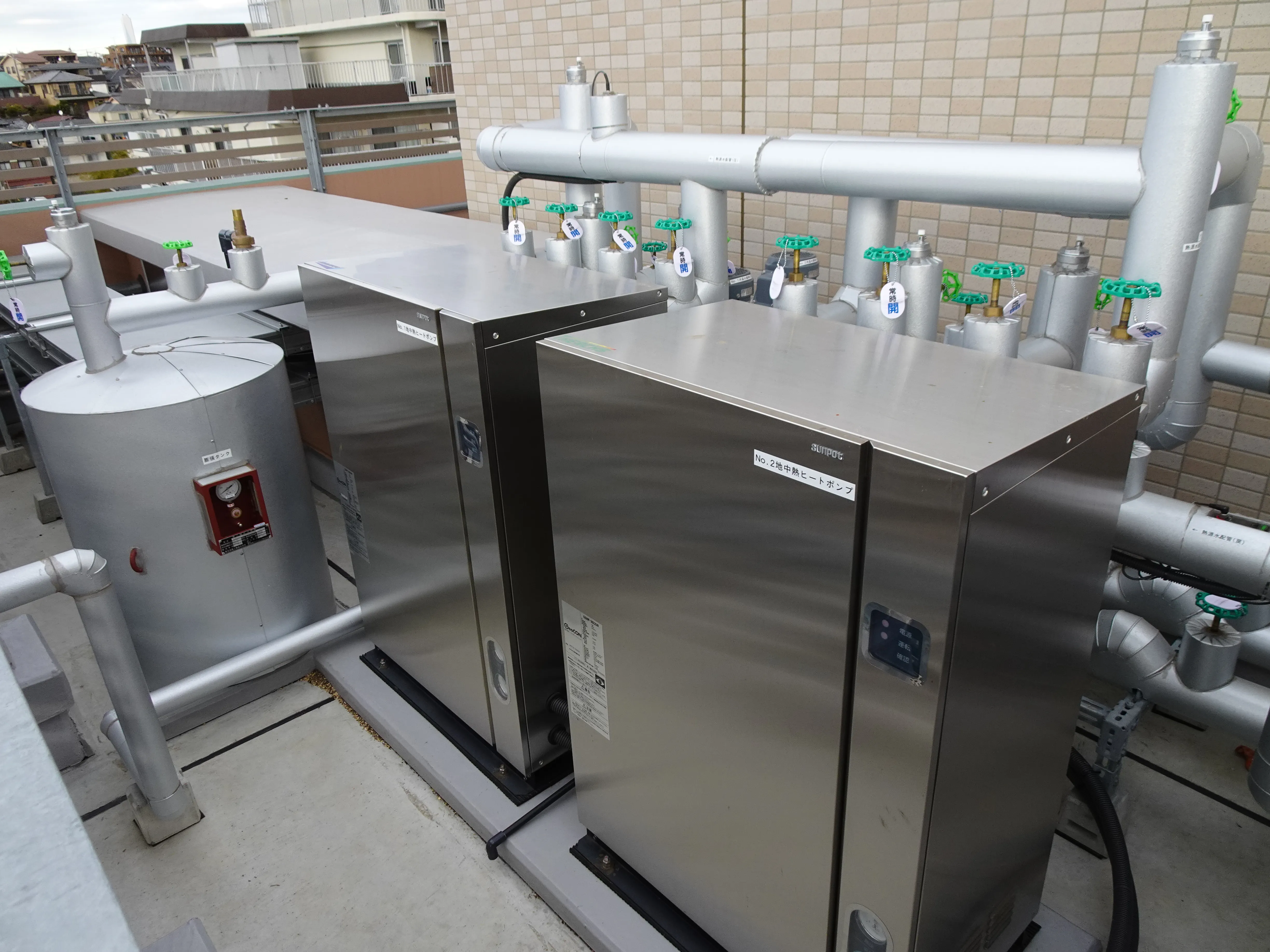 2台のヒートポンプは屋上に格納されている