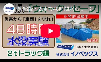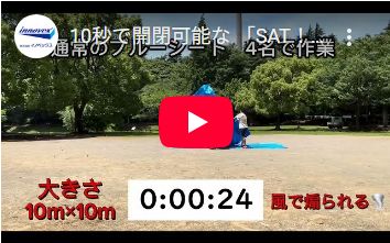 災害時の緊急対応を想定し、少人数でもすぐ開くよう工夫してたたまれ、その「たたみ方」で特許出願、また、素材を工夫し従来のブルーシートと強度は同等ながら約15%の軽量化。