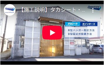 「タカシート」「ポインターズ」の取付・施工方法を簡潔にご紹介します。この製品は倉庫、工場、作業場、量販店などの環境を整え、省エネや防虫、鳥よけなど様々なお役に立てる透明なノレン状の間仕切り製品で、施工もとても簡単です。