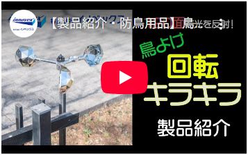 太陽光線を反射しながら風の力で回転して鳥を威嚇し、防鳥忌避効果を発揮する商品です。付属の結束バンド(長さ57cm、黒)などを使って適当な支柱などに固定してご利用ください。