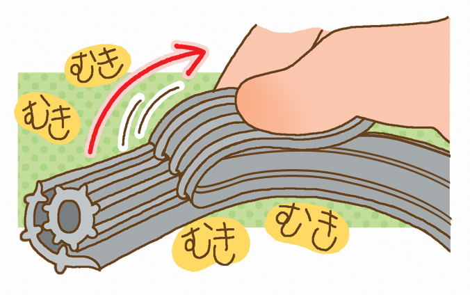 お使いの網戸に合わせて、太さを3段階に変えられるゴム
