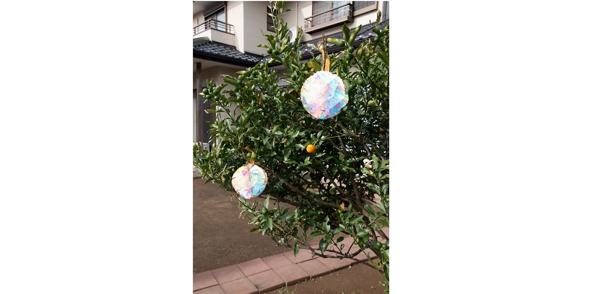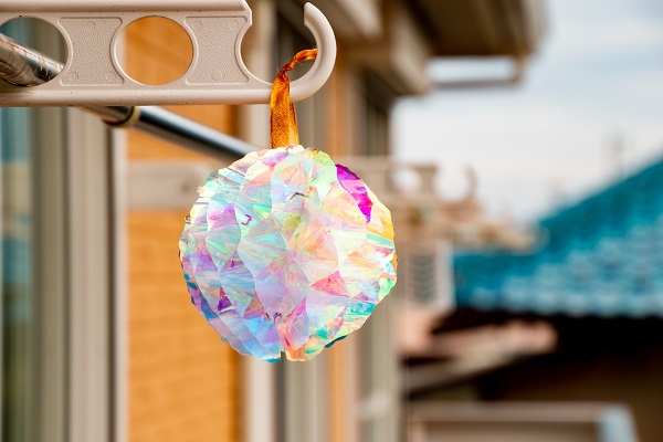 不思議な光りかたをする防鳥忌避具。鳥にアピールしたい場所に気軽に吊り下げてご利用いただけます。