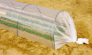 約0.75mmの細かい網目により、更なる防虫性を実現しました。しかも極細糸を使用することにより通気性も確保した、ワンランク上の防虫ネットです。網を張る時に便利な目印ラインが入っており、初めて張られる方でも簡単に設置ができます。太陽の光を約90%通し網の上から散水もできるので、播種から収穫まで取り外し不要です。