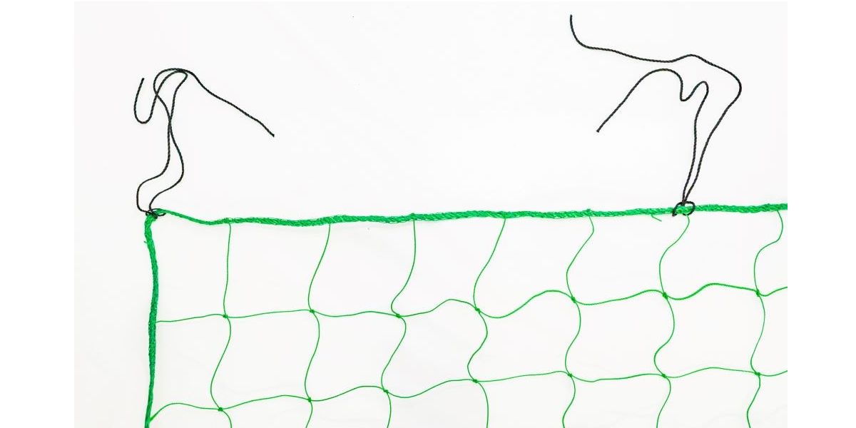 緑のカーテンを設置する場合のおすすめネットです。従来の切りっぱなしの「つるものネット」ではなく、周囲を頑丈なロープで補強してあり、さらに設置がしやすいように上下に60cm間隔で3mmロープが8ヶ所取り付けてあります。これ1枚で掃出し窓約2枚分をカバーし、高さは軒下からの設置に最適な3mとなっています。